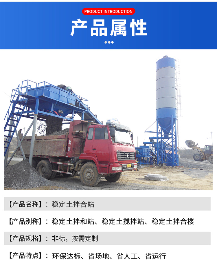 穩(wěn)定土拌合站:生產(chǎn)穩(wěn)定土機械設(shè)備的組合,是對各種混合料進行配比加水?dāng)嚢?、它包括:骨料配比、水泥罐體,計量輸送設(shè)備,攪拌設(shè)備‘皮帶輸送設(shè)備、成品料堆放、和電腦控制操作。